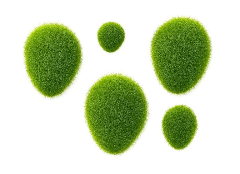 kamienie na styropianie pokrytem sztucznym mchem