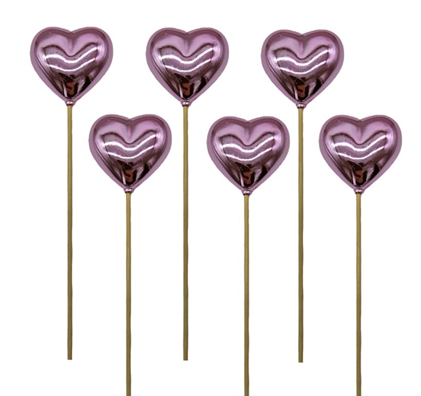 Serce Plastikowe Na Piku Jasny Róż Błysk 6 szt
